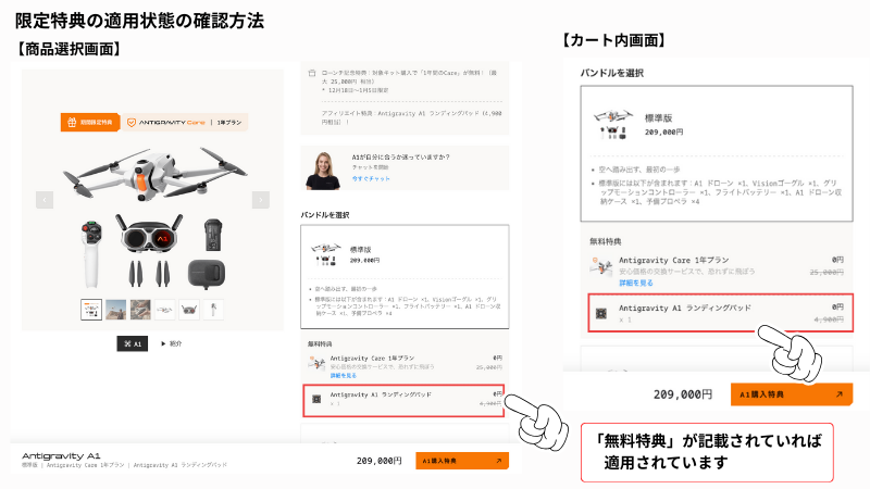 | Antigravity A1 標準版 | 31,500円オフ | ランディングパッド (4,900円相当) |