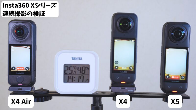 本記事では、Insta360 X4 Air、X5、X4の連続撮影検証を行い、バッテリー持ち時間と熱停止の耐性について徹底検証しました。