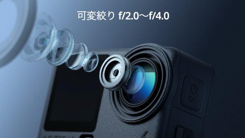 アクションカメラに可変絞り(F2.0~F4)を搭載