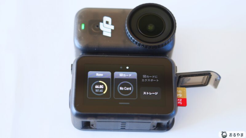 DJI Osmo Nanoは、内蔵ストレージ(64GBまたは128GB)を搭載しており、撮影時にSDカードがなくても撮影できます。