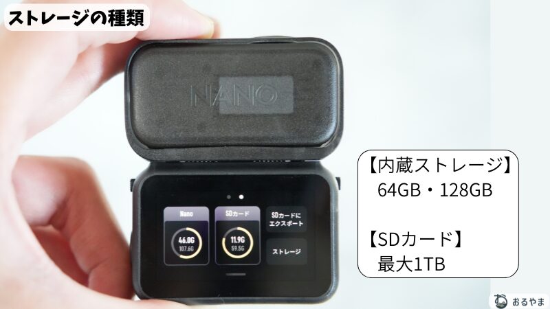 DJI Osmo Nanoの撮影時間は、熱停止だけでなく、内蔵ストレージ容量(64GBまたは128GB)によっても決まります。