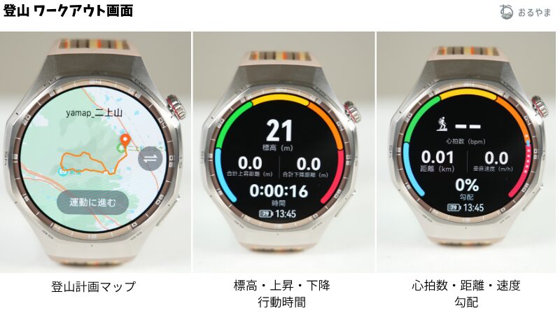 YAMAPやヤマレコの登山計画(GPXファイル)はインポートして使えますが、Apple WatchやTicWatchのように「YAMAP」アプリと直接的な連携はできません。