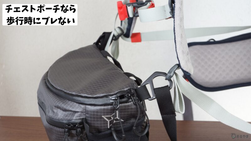 「サコッシュ」や「チェストバッグ」としての役割を兼ねられるため、ウェアのポケットを空にして歩きやすくできるのも大きな利点です。
