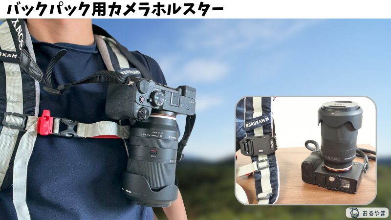 カメラクリップは、多くの登山家が愛用しており、ザックに固定することでカメラの重さが両肩に分散でき、速射性に優れた携行スタイルです。