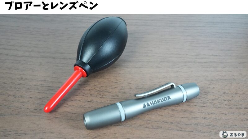 ホコリは傷の原因になるため、ブロアーの強い風で吹き飛ばし、それでも取れない汚れや指紋をレンズクロスで優しく拭き取るのが基本です。