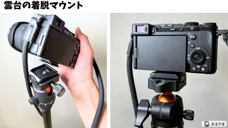 三脚と合わせて持っておきたいのが、カメラと雲台をワンタッチで着脱できるマウントです。